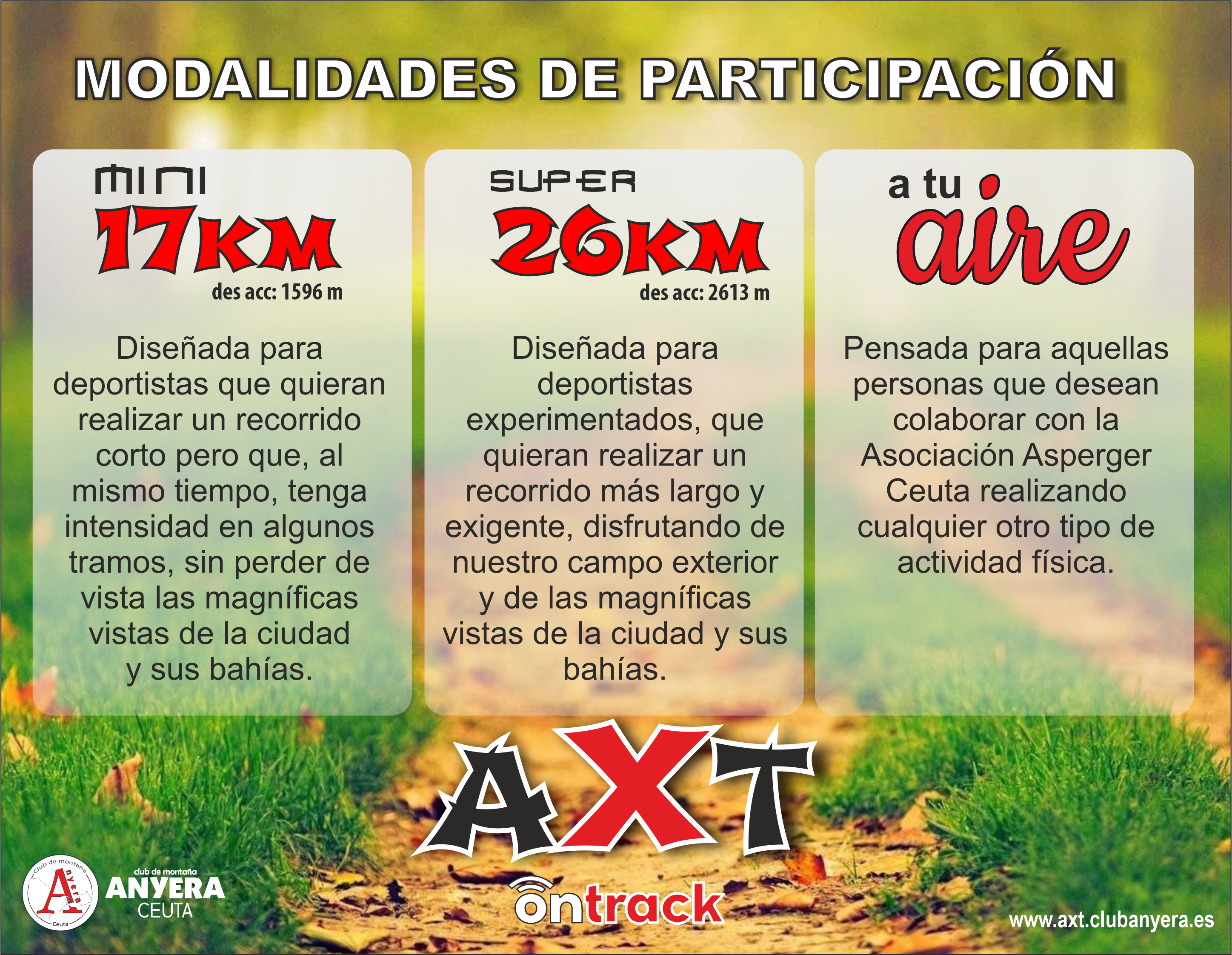 La AXT es una prueba solidaria. Por lo tanto, nuestro verdadero objetivo es lograr la máxima participación y así poder realizar una aportación económica que ayude al funcionamiento de la Asociación Síndrome Asperger de Ceuta.