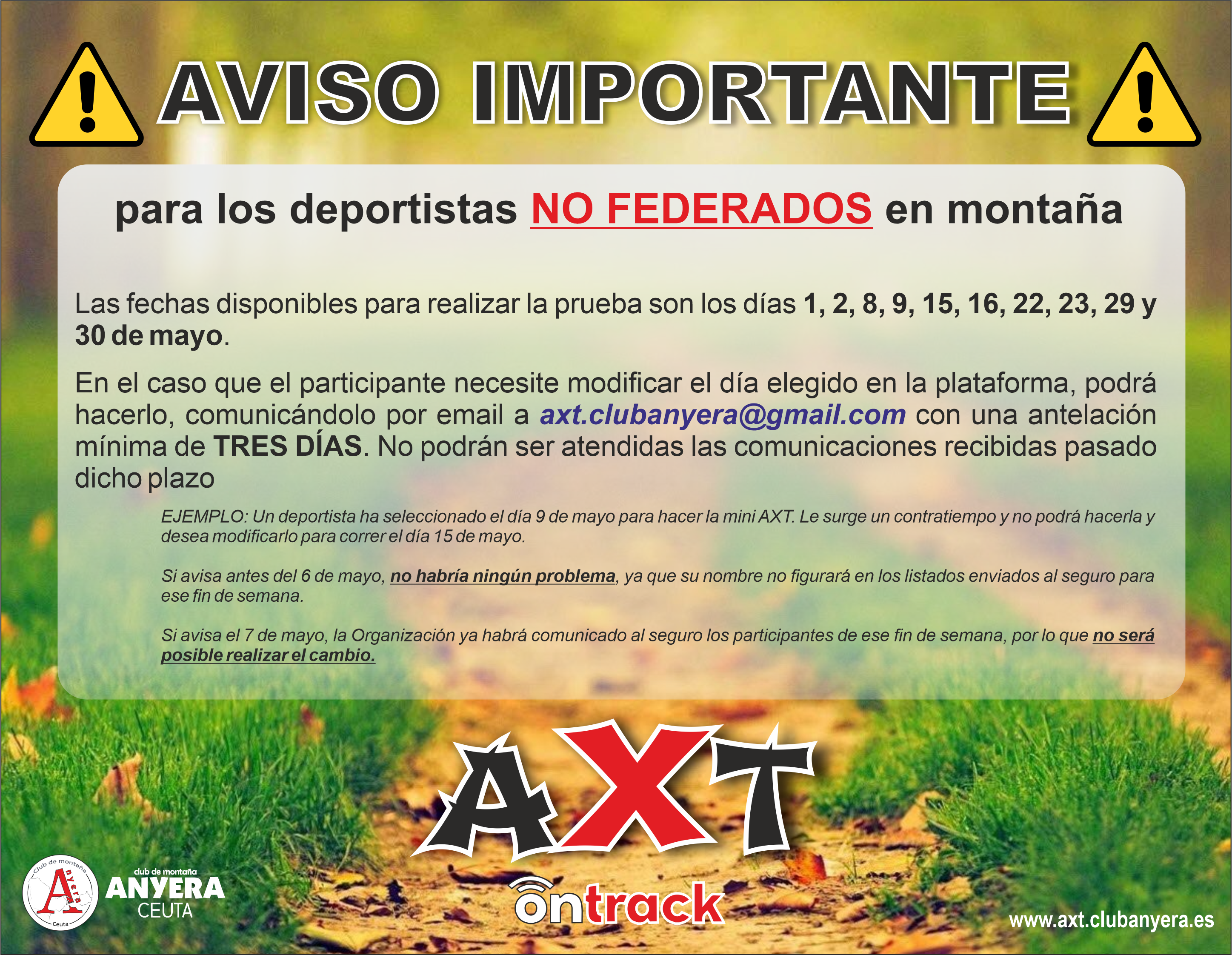EJEMPLO: Un deportista ha seleccionado el día 9 de mayo para hacer la mini AXT. Le surge un contratiempo y no podrá hacerla y desea modificarlo para correr el día 15 de mayo.